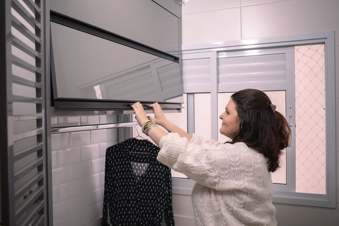 Reforma do apartamento de 75m² para atender às necessidades da família e do seu querido gato Lasanha, que, assim como seus humanos, merecia um espaço maior e mais confortável. A sala, coração do lar, é onde a família se reúne e recebe amigos, tornando-se o local preferido de todos, inclusive do Lasanha, que desfruta de seu playground especial nesse ambiente acolhedor.